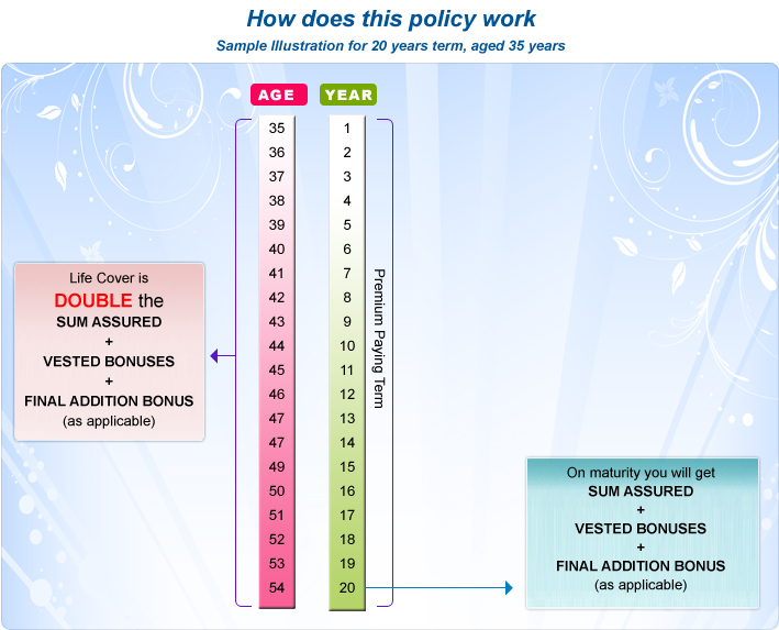• MATURITY - Sum Assured + Bonus + Final Addition Bonus (as applicable) will be paid.