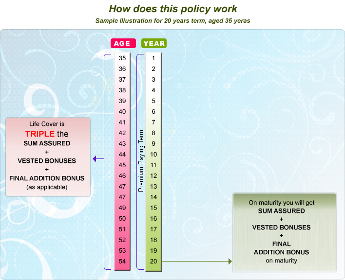 • MATURITY - Sum Assured + Bonus + Final Addition Bonus (as applicable) will be paid.